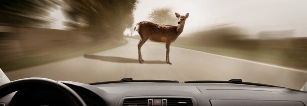 Nicht nur im Herbst, auch im Frühjahr ist die Gefahr von Wildunfällen hoch. Vor allem Rehe sind nach dem Winter sehr aktiv, um Futter zu finden.